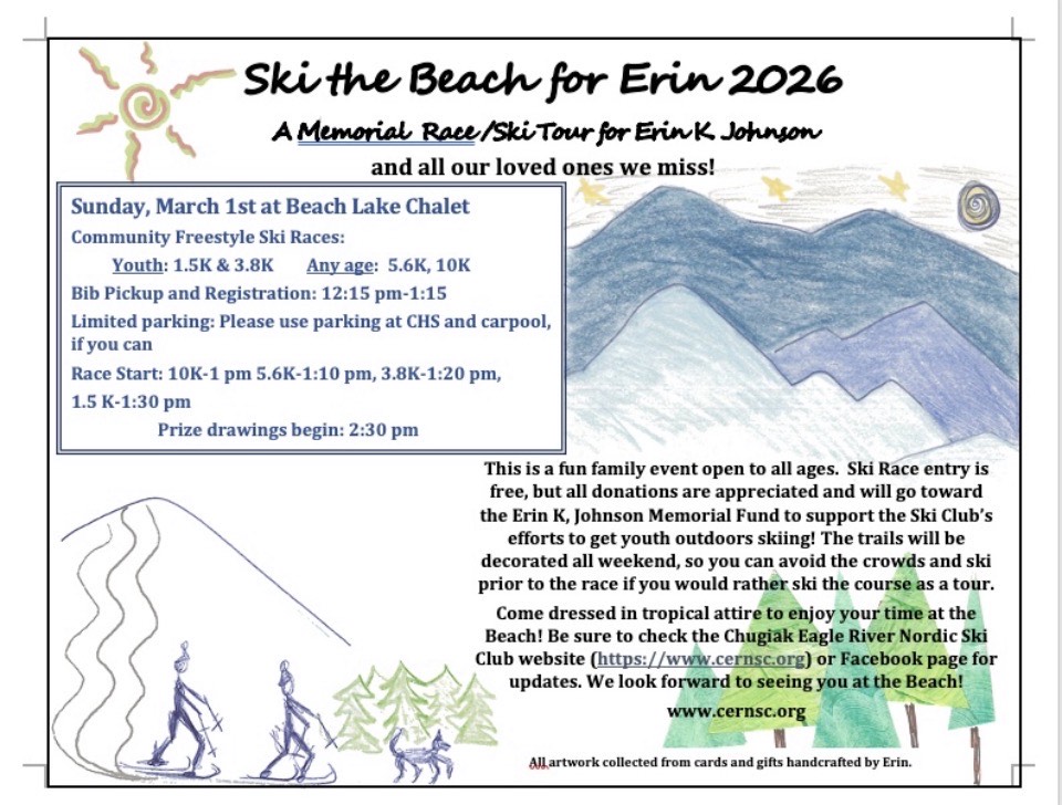 A HUGE thanks to all of the businesses who have donated awesome prizes for races in past years including Alaska Mountaineering and Hiking, Barneys Sports Chalet, Carrs/Safeway Eagle River, Coldstone Creamery, the Eagle River Nature Center, Great Harvest Bread, Jitters Coffee Shop, and Skinny Raven Sports! We greatly appreciate your support to our local ski community!!